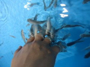 「出口のところには大きな水槽があり、中には小さな魚たちがいっぱい!」