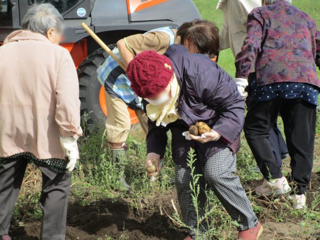 スコップで畑を掘ると、お芋がころころと顔を出しました(*^-^*)