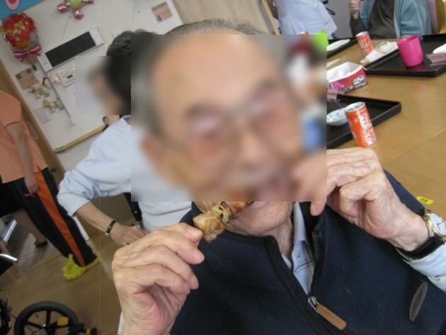 みなさんがおにぎり作りに精を出している頃、ゆうな木の外では炭火で焼き鳥を焼いていました。