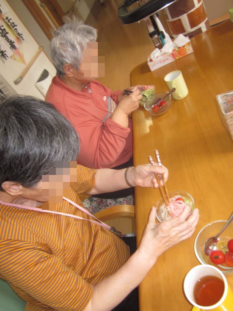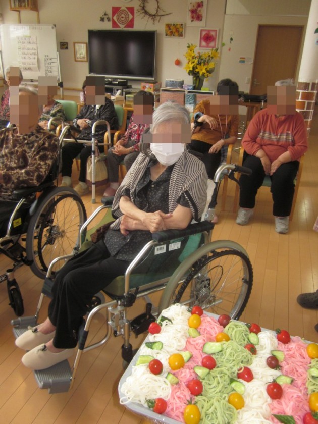 おやつでは、三色そうめんを食べて頂きました。