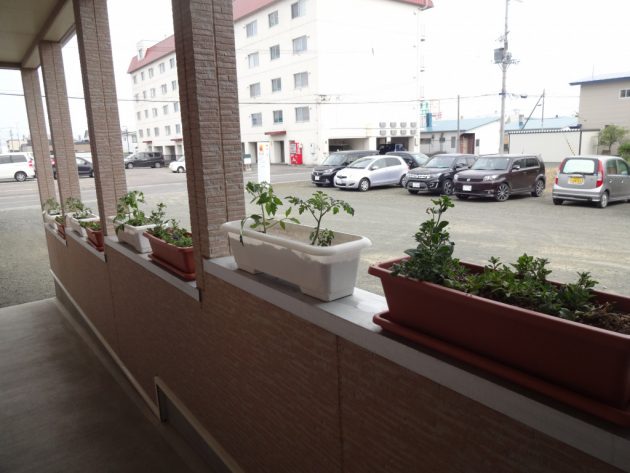 植え付けたトマトのプランターは楓の里入り口スロープへ~♪