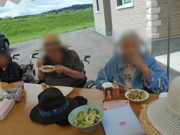 今日は外で焼肉をしながら、7.8.9月生まれの方々のお誕生日のお祝いをしました。