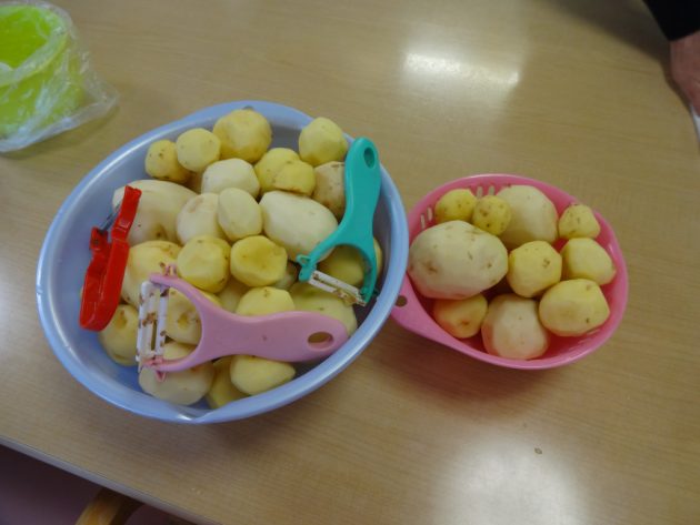 「楽しい」と話され、上手にピーラーを使い、大量の芋を剥いてくださいました。