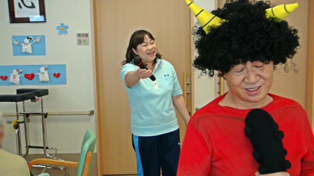 鬼にも優しさを見せ、そっと当てる入居者さんもいらっしゃいました…。(汗)