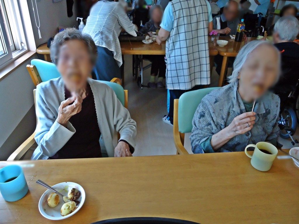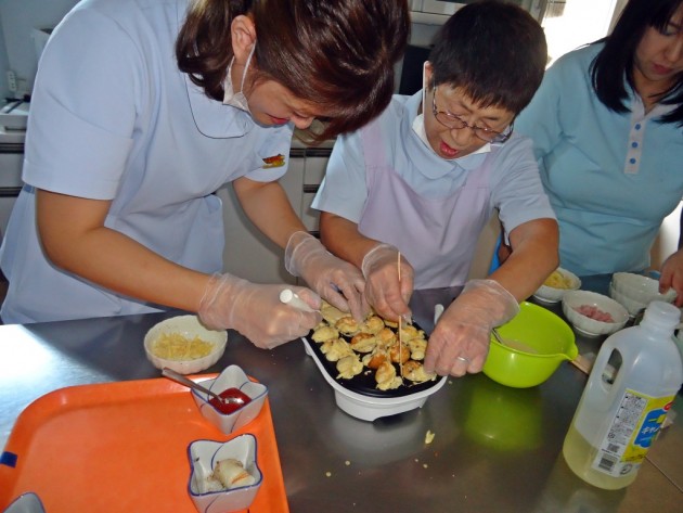 誕生会のおやつは、ホットケーキのたこ焼き風です。