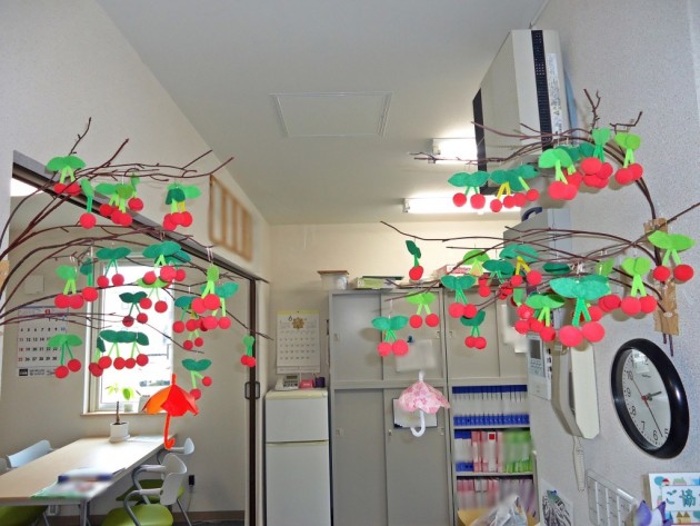 玄関先にはサクランボの季節ということでサクランボが飾られています。