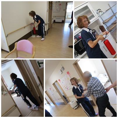 利用者様も一緒に消火訓練に参加です!