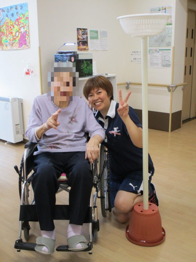 真剣な表情でカゴを目指して玉を投げ入れていました。