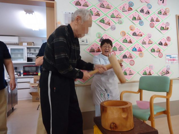 仕上げは施設長についてもらいました。腰のある餅がつきあがりました。