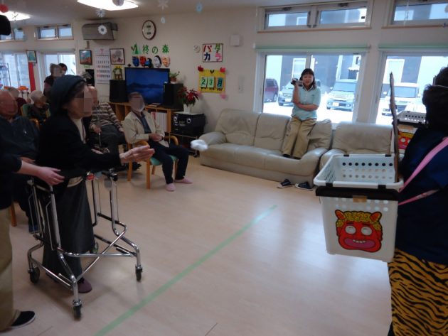 節分にちなみ、本日のレクは担当職員が考案したゲームを行います。